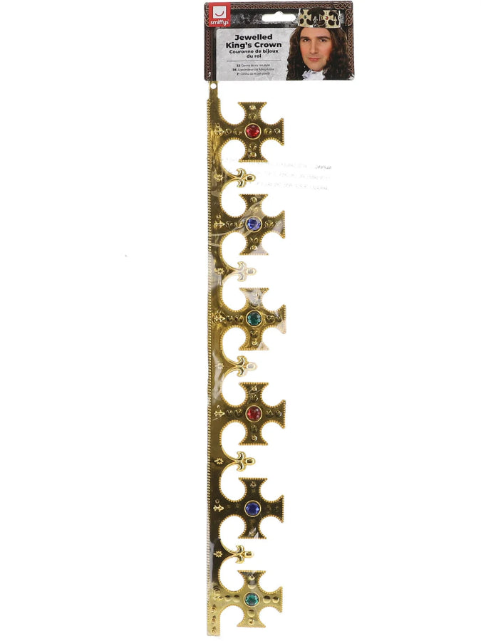 Rule your loyal subjects with this Gold Jewelled Kings Crown. Perfect for domineering dress up! Command the respect you deserve at your next fancy dress party. Your lady can match in the Jewelled Queen's Crown.. Comes flat packed just click together