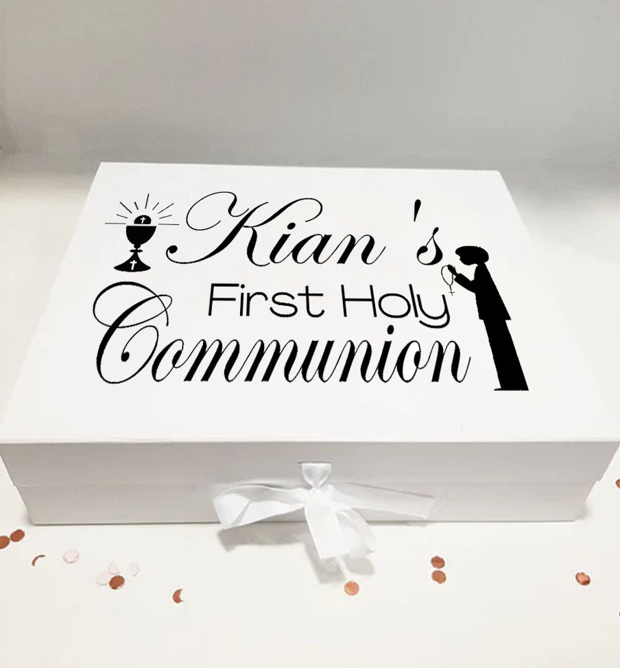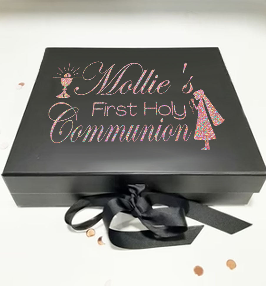 Celebrate this sacred milestone with a personalised First Holy Communion gift box that's as special as the occasion itself! Each box can be customised with the child's name, making it a treasured keepsake they'll remember forever. Perfect for godparents, family, and friends seeking a meaningful gift that goes beyond the ordinary. this personalised touch transforms a simple gift into an unforgettable memory. Make their big day even more magical!