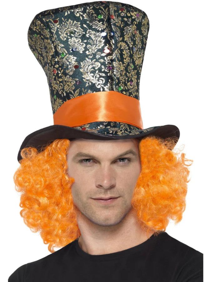 This is one accessory sure to turn some heads! The top hat features attached bright orange hair - you're sure to stand out at the fancy dress party in this accessory!.