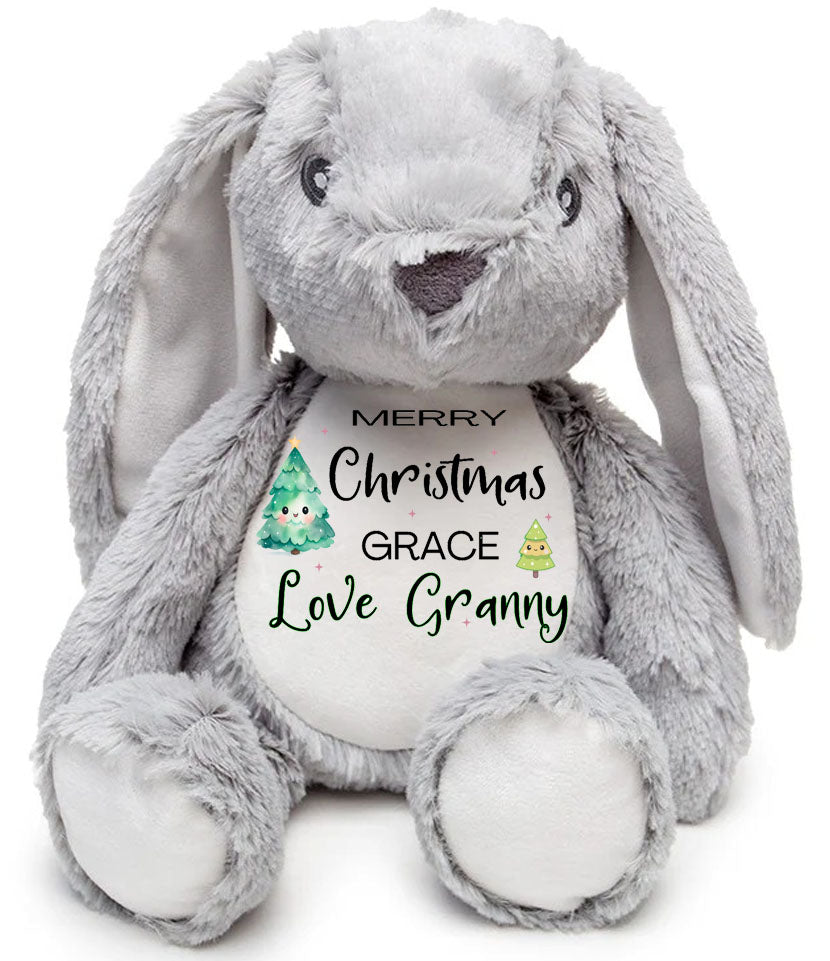 Personalised Christmas Teddy Bunny with Custom Message Spread festive cheer with this delightful personalised Christmas teddy bunny! This cuddly companion comes with your own custom message to make it extra special. Perfect for tucking under the pillow, or gifting to someone who deserves a jolly surprise. Add a heartfelt note and a child's name, your message brings the magic! Soft, snuggly, and bursting with seasonal warmth, this bunny becomes a treasured keepsake that celebrates the joy of the season. The ideal gift for creating Christmas memories that last year after year!