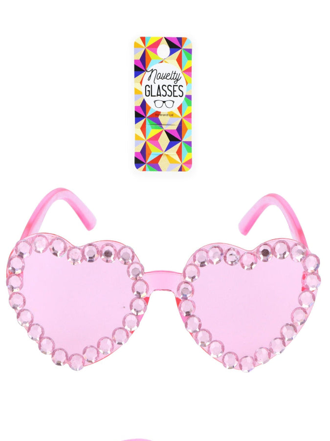 These frameless heart-shaped glasses in pale pink are decorated with rhinestones around the edges, and they make an ideal accessory for a number of fancy dress outfits, parties, and hen night celebrations.