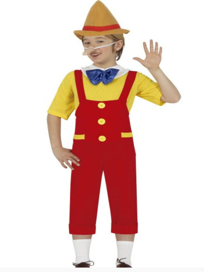 Transform into the famous puppet with this delightful Pinocchio Kids Costume! This complete outfit includes everything your little one needs for instant character magic: the iconic long nose, bow tie, striped jumpsuit, matching hat, and coordinating t-shirt. Perfect for fancy dress parties, Halloween, or theatrical performances, this costume brings the beloved storybook character to life. Watch their imagination soar as they step into Pinocchio's wooden shoes and create their own adventures!