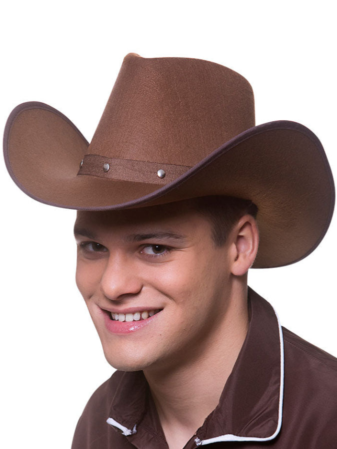 Complete your cowboy look with this bold Texan Dark Brown cowboy hat, featuring a sleek black studded band for extra flair. Perfect for standing out at any costume party or rodeo-themed event, this hat adds authentic Western charm with a fun twist. Saddle up and get ready to impress!